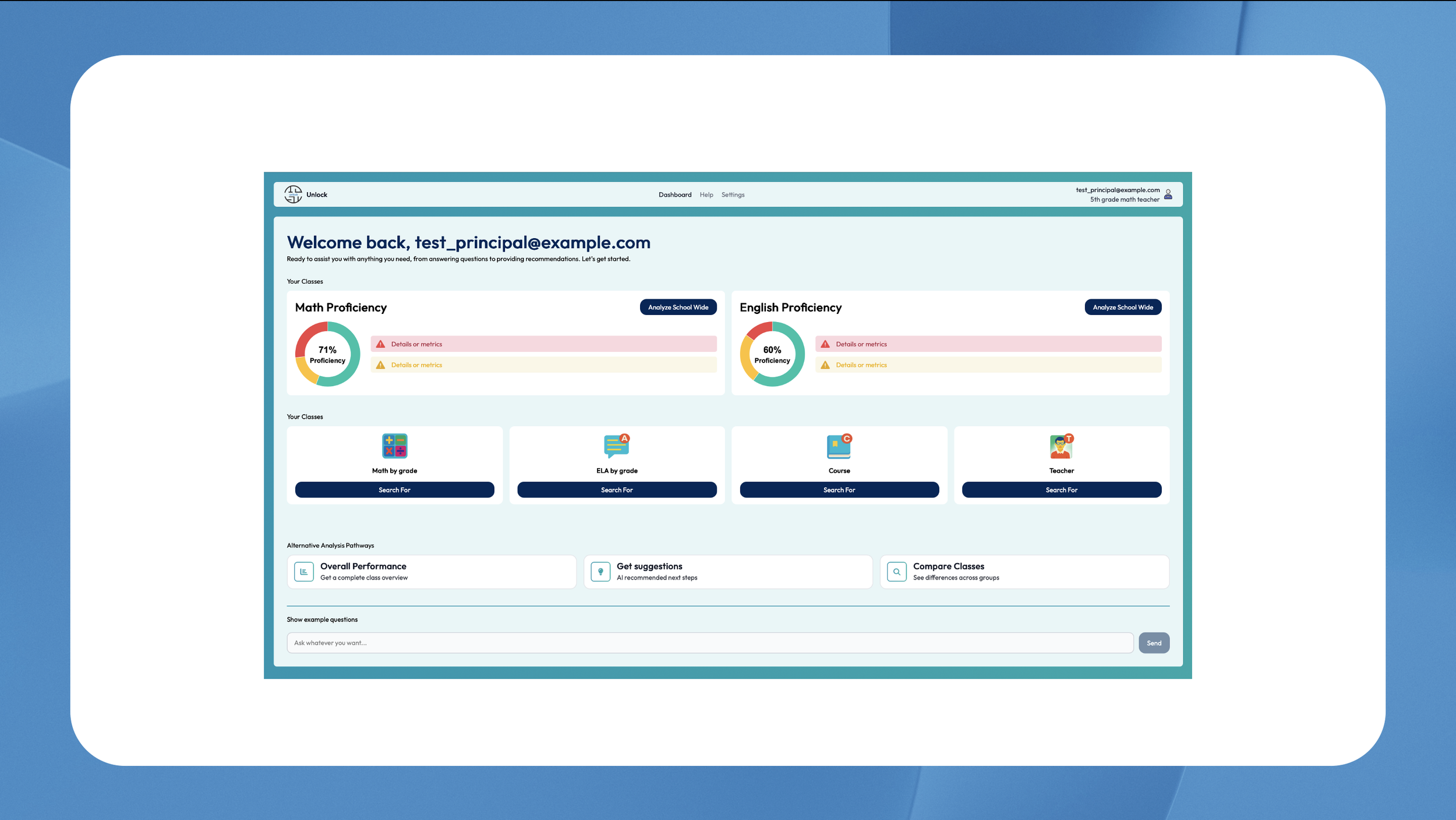 Empower your decision-making processes with comprehensive data insights for program effectiveness, course optimization, tailored teacher training, and improved hiring and retention strategies.